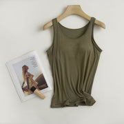 Inner layer offers soft support and holds bra cups securely. Outer layer is breathable, stretchable, and lightweight for all-day comfort. Integrated bra cups provide gentle lift and shaping without the need for an additional bra.
