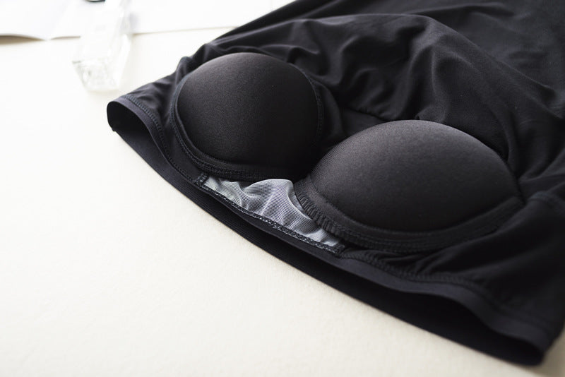 Inner layer offers soft support and holds bra cups securely. Outer layer is breathable, stretchable, and lightweight for all-day comfort. Integrated bra cups provide gentle lift and shaping without the need for an additional bra.