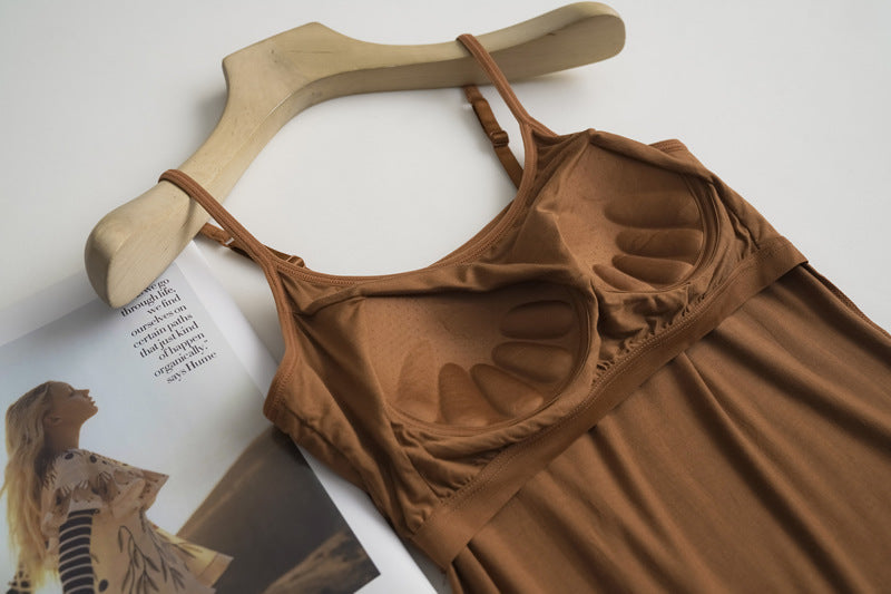Inner layer offers soft support and holds bra cups securely. Outer layer is breathable, stretchable, and lightweight for all-day comfort. Integrated bra cups provide gentle lift and shaping without the need for an additional bra.
